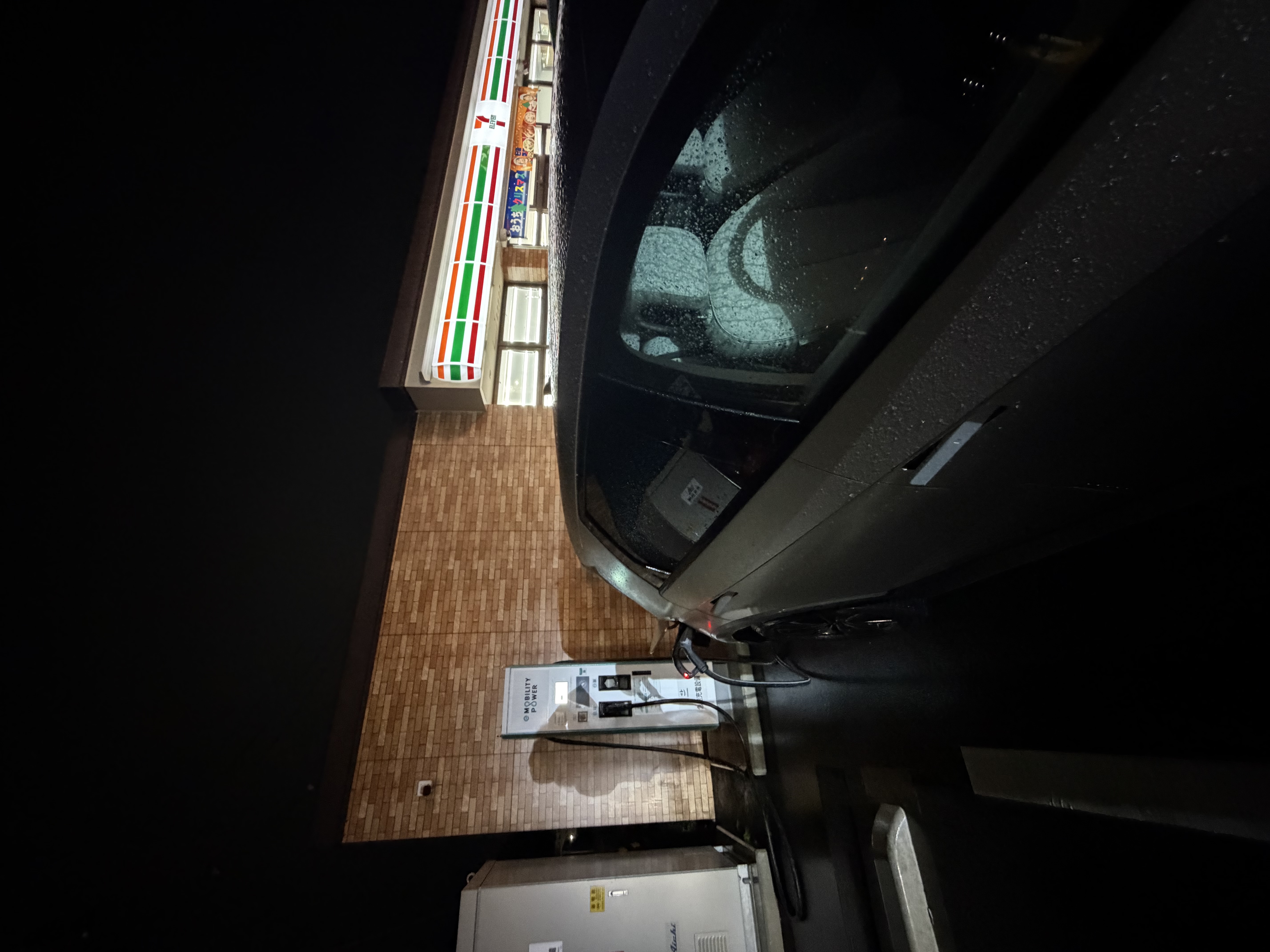 国道沿いのセブンイレブンにあります。 2口あるのでいつも空いています。 アウトランダーなので入力が105アンペアまでしか対応していないので、150KW/hをフルに活用できないのは残念です