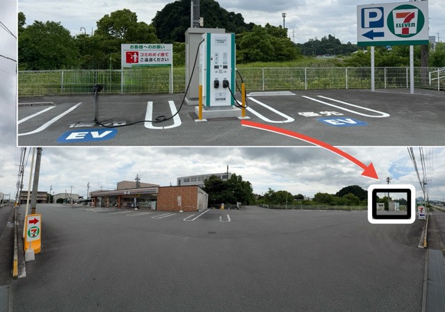 霞ヶ浦羽津山線沿いのセブンイレブン 四日市八田1丁目店に設置されてます急速充電器です。