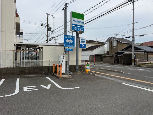 • ファミマ看板下に設置されています。最近更新され、eMPの新しい充電器になっています。