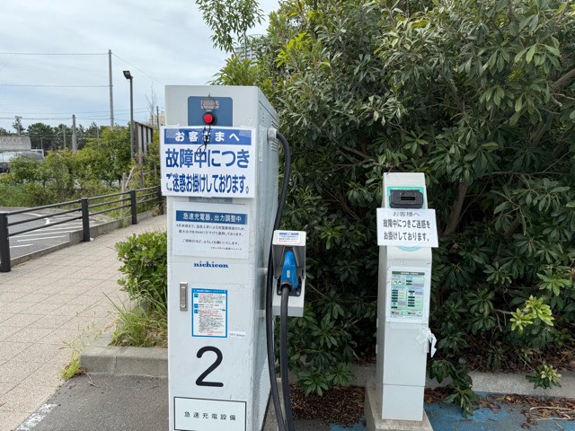 急速充電器も普通充電器も故障中で使用不可です