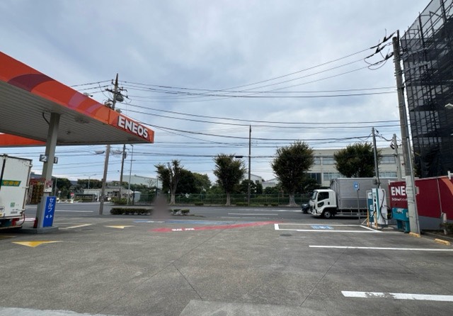 洗車機横の拭き上げスペースに並んで設置されています。洗車のついでに充電するのも良いのではないでしょうか。 このENEOSは敷地が非常に広く、入りやすく駐車もしやすいと思います。