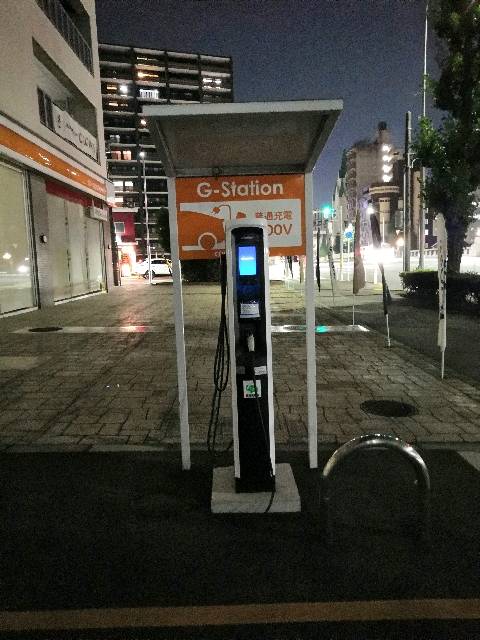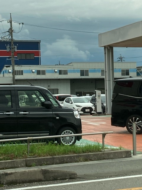 • 名古屋トヨペットのお客様駐車場の店舗目の前です。 トヨタには珍しく急速充電器がありました。 普通充電器と計2台です。