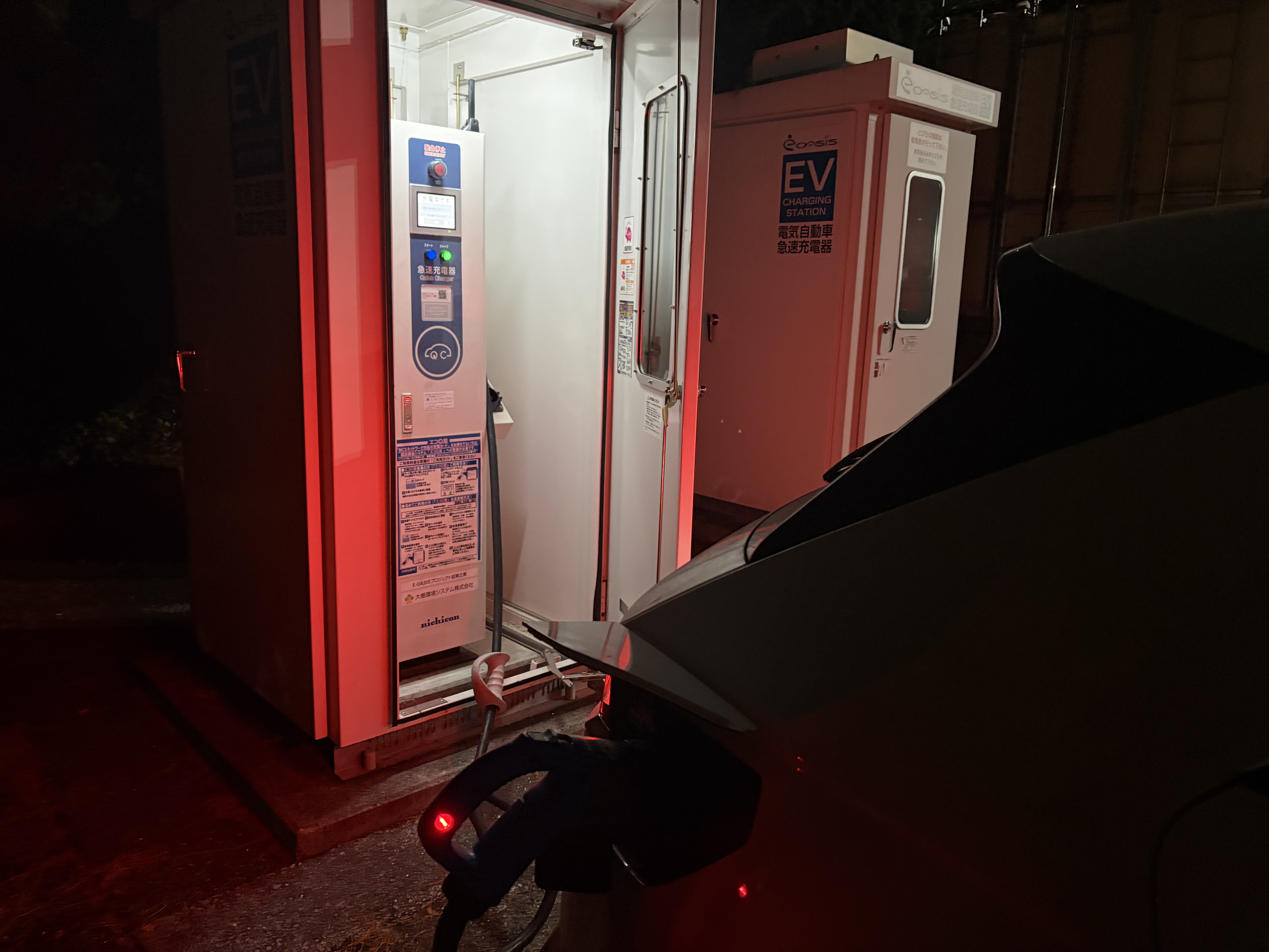 新しい50kWの充電器に更新されました。アプリ登録は不要で、クレカやQRコードで決済できるタイプです。