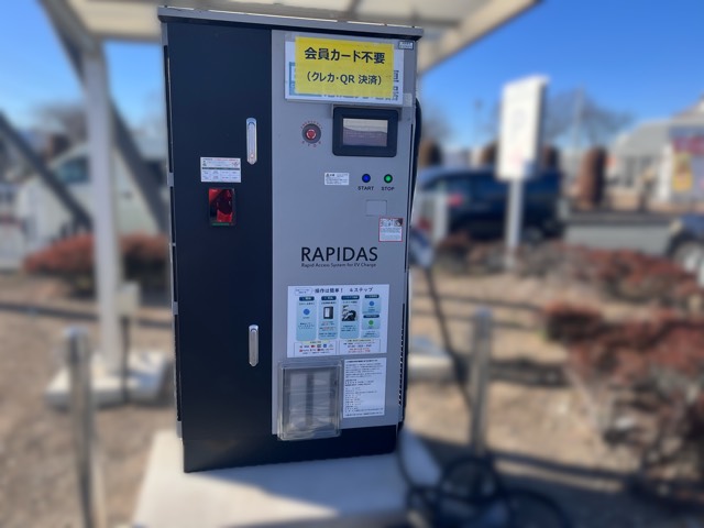 JFE製50kw急速充電器が設置されていました。クレジットカードや各種QRコード決済から利用可能でe-Mobility Power系カード等は使えないので注意が必要です。また、従量課金制なので110円/kwhから充電できます。ですが、従量課金制で1kwhあたり110円は高すぎるのではないかと思いました。
