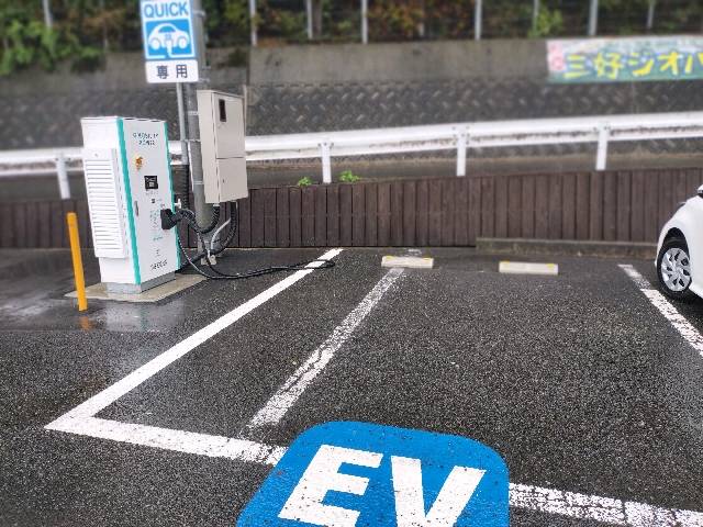 • 道路から見て左側の独立した車室にあります。 四国の中央のあたりのインフラはまだ充実しているとは言い難いかもしれません、、付近の道の駅にも50kWがありますが安心感があるとまではいかないかもしれません、また周辺のエリアで、他の充電スポットで更新されたり新しく増えることに期待したいです。