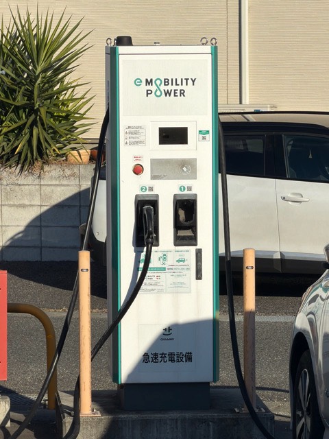 2026/01/06現在、工事中で一機のみ稼働中。アウトランダー など右後方に充電口がある車両は頭から駐車しないとケーブルが届かない。
