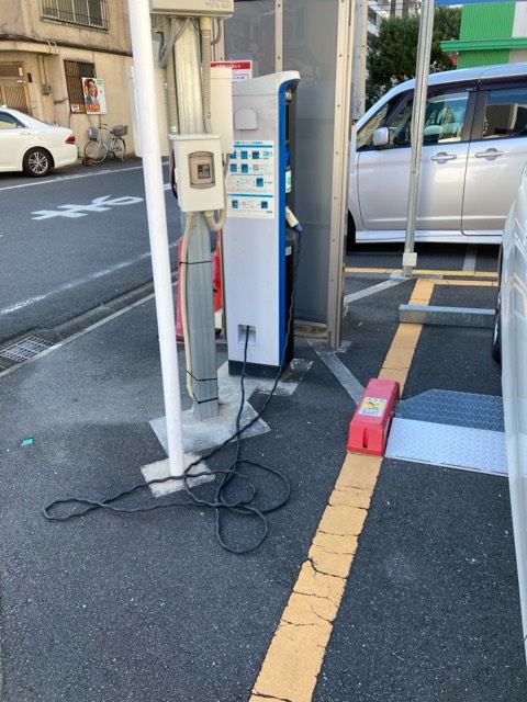 コインパーキングの駐車場に普通充電器が設置してありますが、ガソリン車が、止まってました。