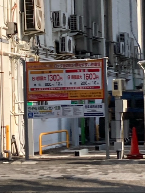 ラッキーパーキングの駐車場に普通充電器コンセントタイプが設置してあります。ガソリン車止まってましたけど。