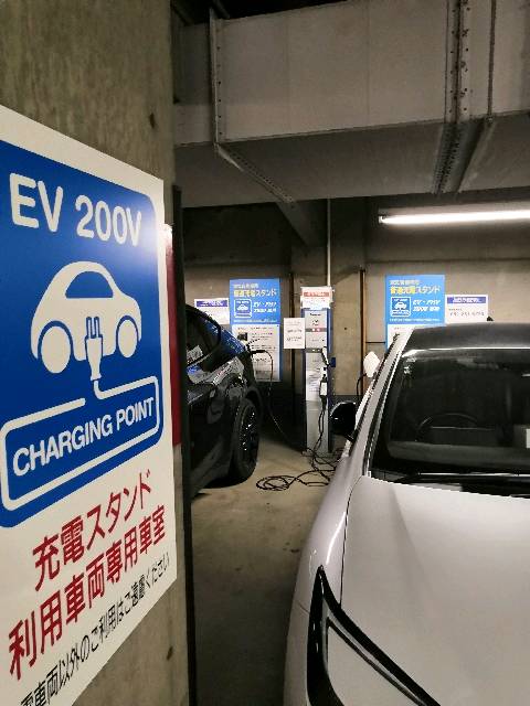 地下1階の入口近くに普通充電器が2台設置してあります。