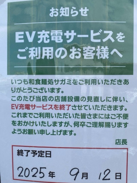 充電サービス終了とのことです。スポットからの削除を検討下さい。