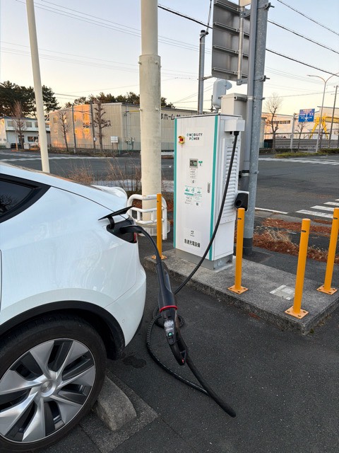 【車種】: テスラ モデル Y 【充電速度】: 普通 【充電した時間】: 約10分 【ひとこと】: いい感じ