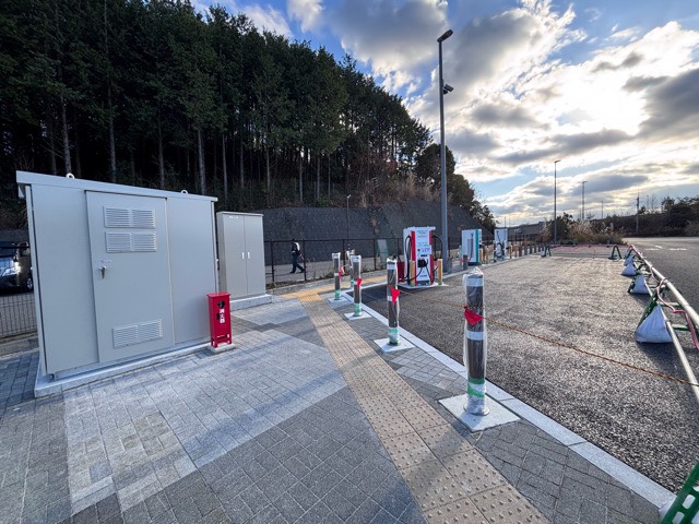 90kWの充電器が1基(2台同時に充電可)あります。 ★データチームより★ 最大出力90kWは、お車が対応しており、かつ1台で充電した場合の参考値です。