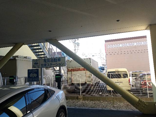 駐車場西側のフェンス付近に2台分ありました。 充電には専用アプリが必要です。