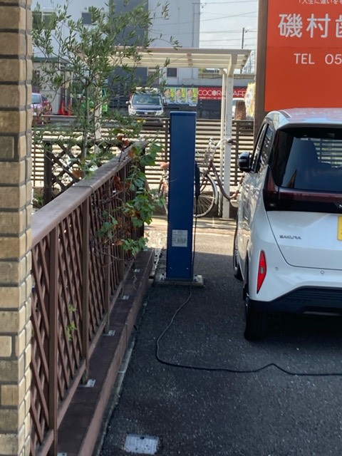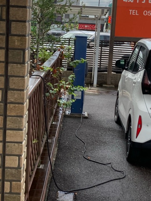 歯科医院の玄関横にあります。 プラグを挿せば充電できます。