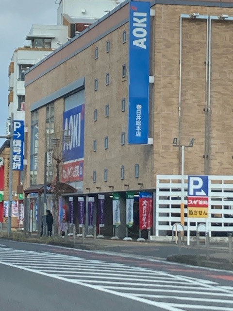 AOKIの駐車場に普通充電器が1台分設置してあります。 二階が店舗なので駐車場に屋根があります。