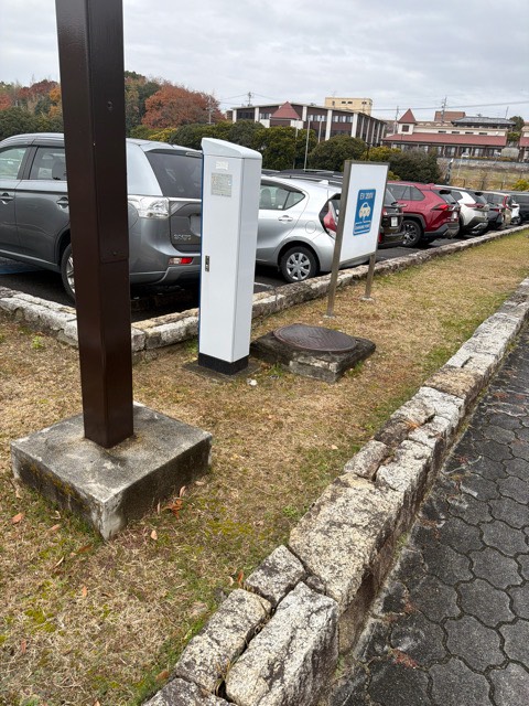 ロータリーから駐車場に入りすぐ右側 申請したらパウチの許可証をもらえるので充電中は車内に掲示する。
