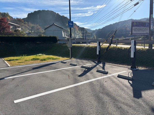 設置場所:駐車場内、施設入り口前を通過した先の左側、建物沿いの駐車スペースにEV充電器があります。