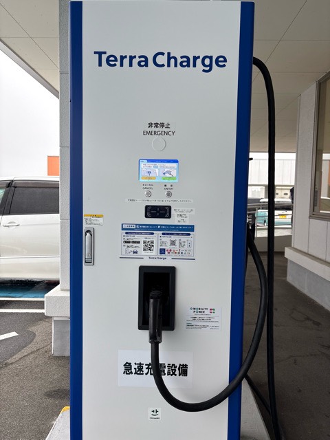 • 90kwタイプのe-mobility POWERの急速充電器です。 最近では凄く設置台数が多くなってます。 意外に高いです。