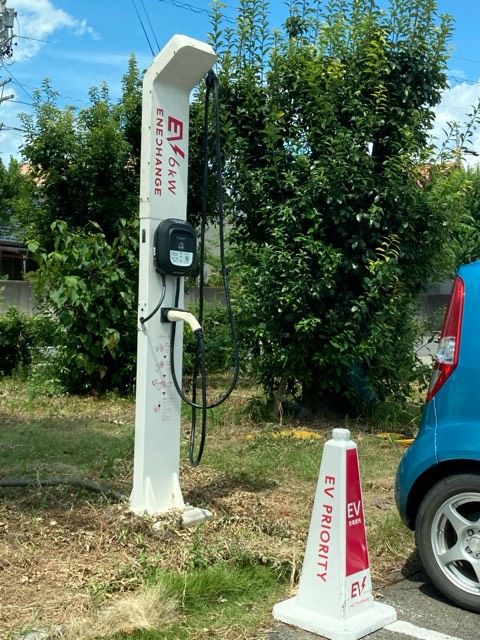 急速充電のとなりに、6khwの充電器も増えてました。 大通り沿いの駐車場にあります。 プラグをさして、充電カードかざすと、充電はじまります。