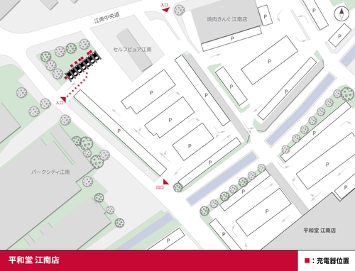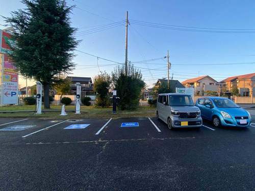 店舗営業時間に準ずる 設置場所:県道64号線(江南中央道)沿いの「コスモ石油 セルフピュア江南 SS」を左手に通過し、次の道を左折すると直ぐ左側に駐車場入口があります。入って直ぐ左の車室にEV充電器があります。 どなたでもご利用いただけます。 最大出力6kW 施設の電気容量により一時的に充電器の出力が変動する場合があります。