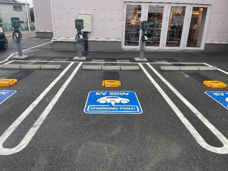 お店の駐車場にあります。 お店の営業時間内に充電できます.