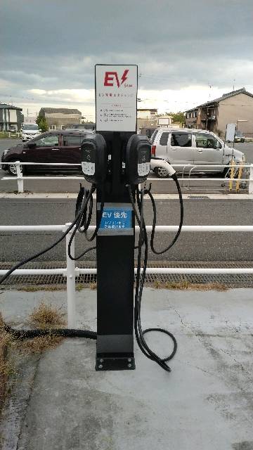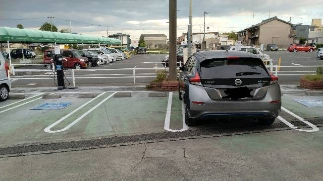 店舗入口前駐車場に エネチェンジさんの充電器4口設置されています。 【車種】: 日産 リーフ 【充電速度】: 普通 【充電した時間】: 約24分 【ひとこと】: ガソリン車も駐車可と書かれていました。故にカラーコーン有りません。 路面上にEV200Vマークが有ります。 横に駐車された車がある場合、 日産リーフはバックでの出庫になる為バックにて出る際少し辛かったです。 かんたん充電レポート