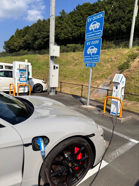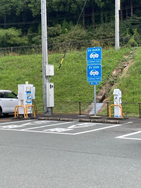 急速充電器はサービスを終了していたのですが、普通充電は使えました。 駐車待ちが起こるぐらい駐車場が混み合っていますが、充電のこの場所が空いているのは助かりました。