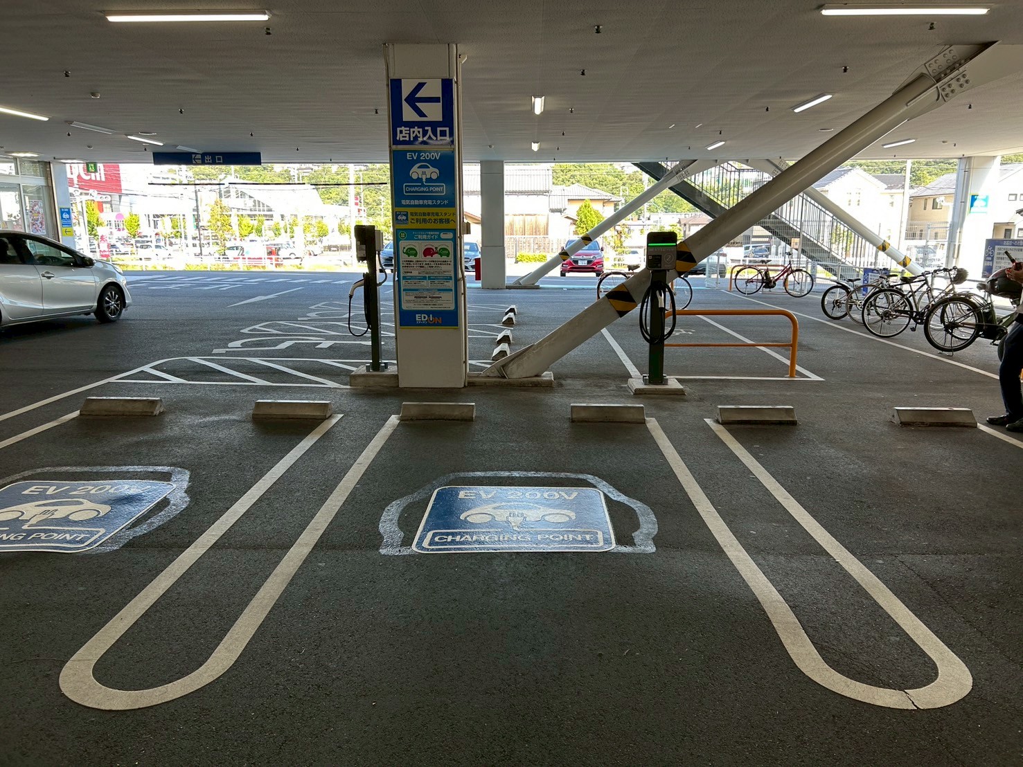 充電器のある駐車場は閉店後も開放されているので、24時間使えます。
