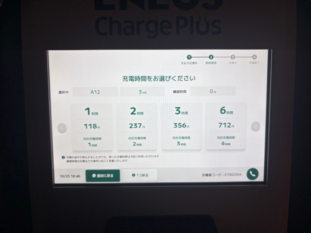 充電器が新しくなっていました。 waonだと1時間118円で以前より2円安くなってます。