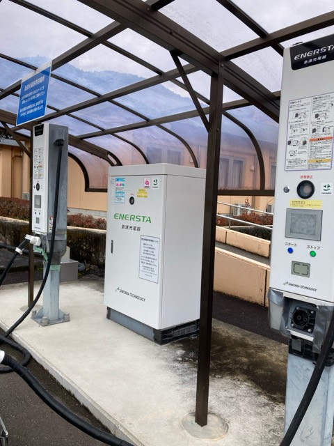 充電設備の稼働を確認しました。先日の豪雨による国道151号の通行止め⇒片側交互通行へ緩和に伴い営業再開。