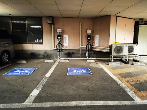 設置場所:建物正面より左側の壁沿いの車室にEV充電器があります。 どなたでもご利用いただけます。 最大出力6kW