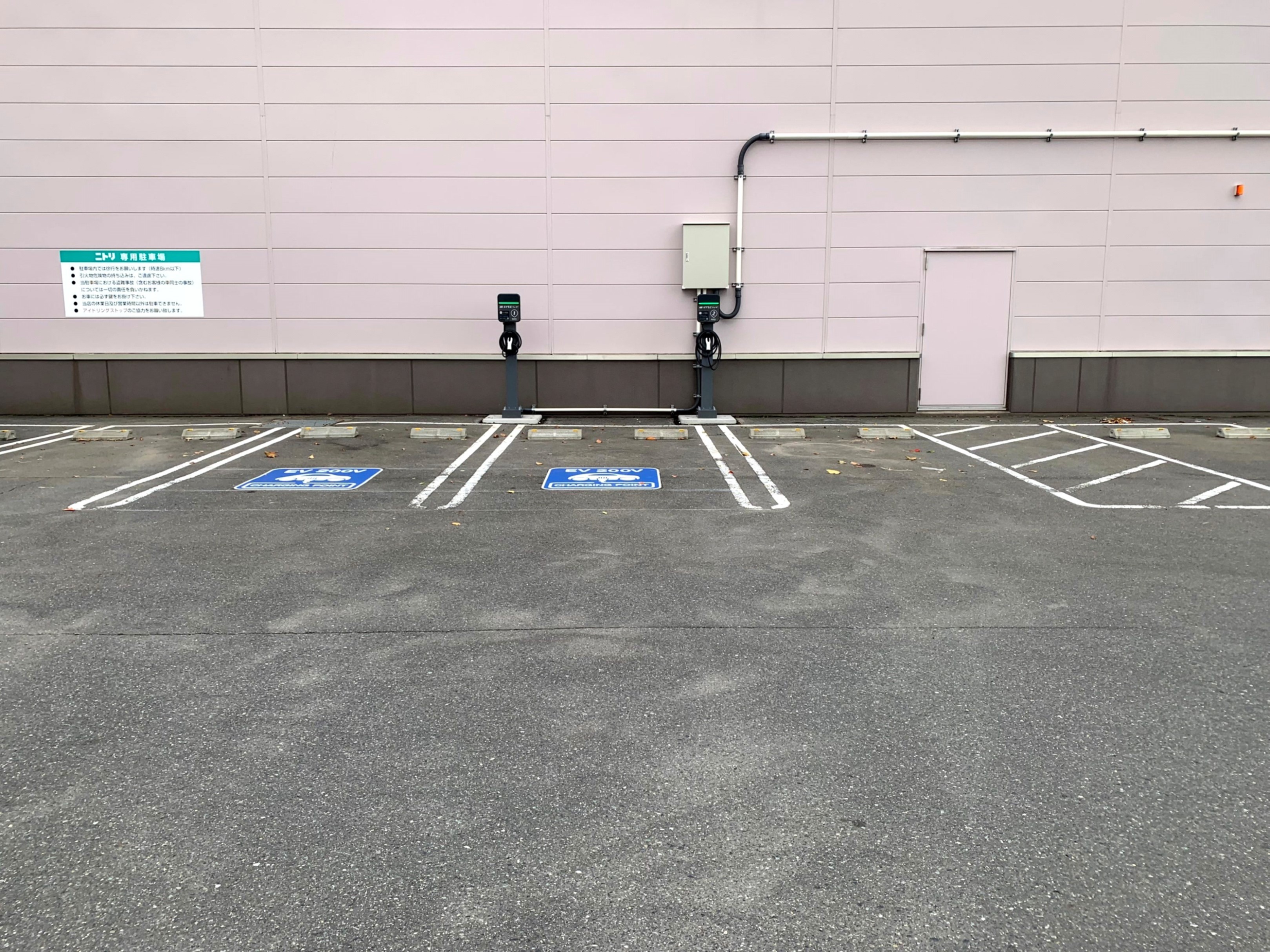 • 店舗建物の角にあります。 充電スペースは道路からすぐの場所でわかりやすいです。