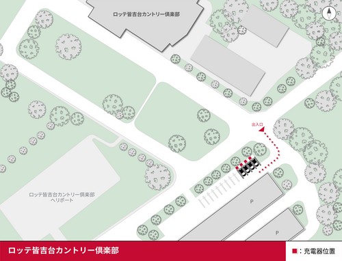 設置場所:「ベルセルバカントリークラブ 市原コース」駐車場内、エントランス前を通過した先にEV充電器があります。 どなたでもご利用いただけます。 最大出力6kW