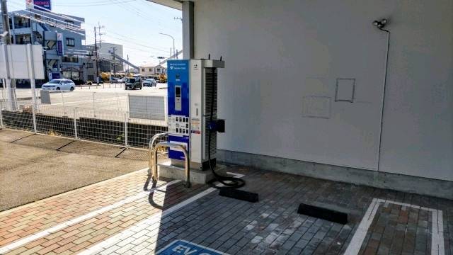 ここは何度か利用させて頂いておりますが、やはり屋根がナイスです。 充電建屋です❣️ 営業時間外ならば、待つところを入口にしていれば、屋根下で待機出来ます。 道の反対側にも日産の充電スタンドがありますが、こちらは屋根無しです。