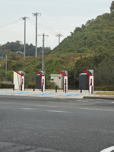 150kWの充電器が1基(4台同時に充電可)あります。 ★データチームより★ 最大出力150kWは、お車が対応しており、かつ1台で充電した場合の参考値です。