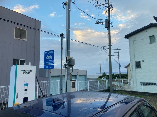 充電中に海まで歩けて気持ち良かったです。駐車場は広く端っこにあります