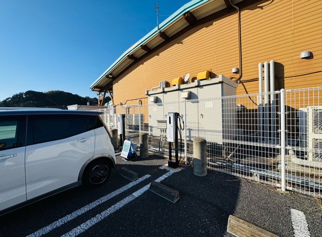 TerraCharge認証日東工業(株)製6kW充電器×2器です。店舗建物の南側、建物沿いに設置されてます。営業時間内で使用可能です。
