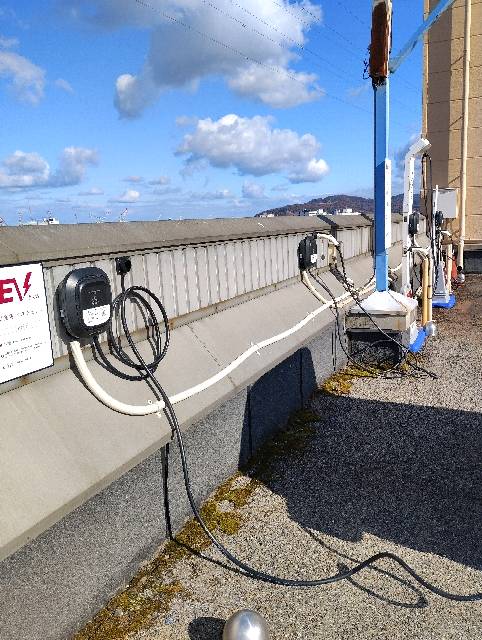 フジグランの屋上駐車場です。 以前は2台でしたが、4台に増えていました。 代わりに無料の3kwの充電器がなくなっていました。