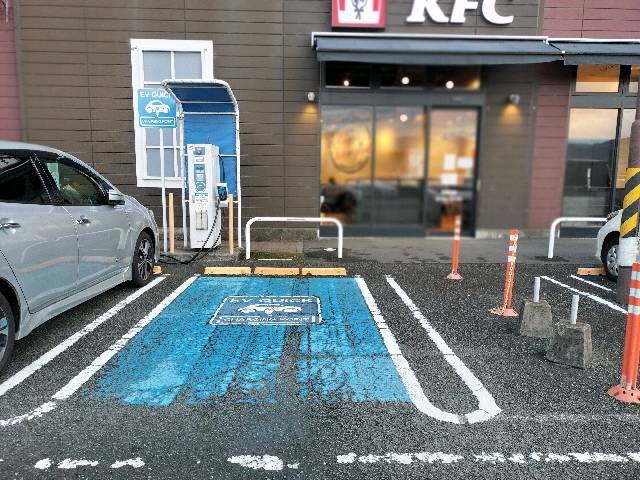 急速x1, 普通x3 があり。 充電中の時間潰しという意味ならフジグランは最適です👍 11号線に面している方ではなく、裏にある駐車場の方にあります。KFCの店舗正面でした。