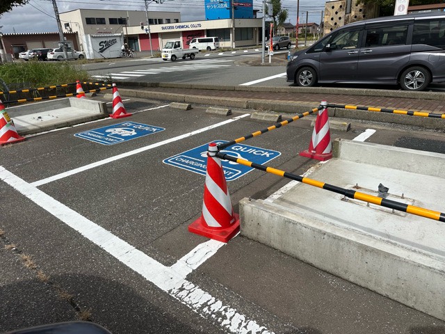 二台、有るのは良いが。 駐車枠のすぐ横の為、リーフだと頭突っ込みで、車体の半分がはみ出る。 出力50-100キロに上げて、充電口が2個のタイプに変更して頂きたい。 EV乗ってる人を設置場所・向きなど決めるのに参加して欲しい。