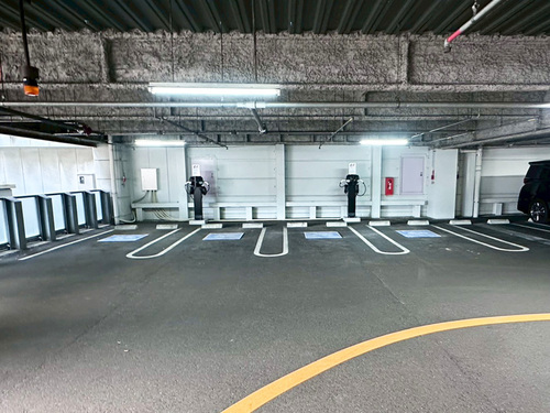 ご利用は宿泊者優先とさせていただきます。宿泊のお客様はホテルの公式サイトで詳細をご確認ください。 設置場所:ホテル斜向かいの立体駐車場1階へ入り直進した先、右手スロープ側の車室にEV充電器があります。 充電器には鍵がかけられていますので、ご利用を希望される際にはフロントまでお申し付けください。 最大出力6kW