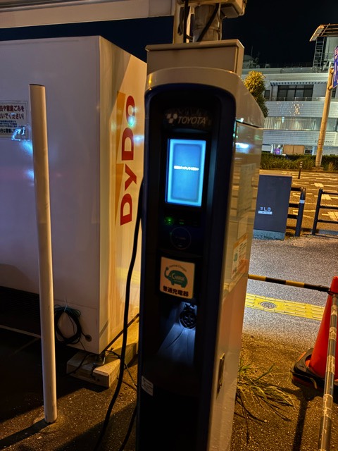 • 日東工業(株)製3.2kW器です。駐車場入りすぐ左手に設置されてます。充電無料です。