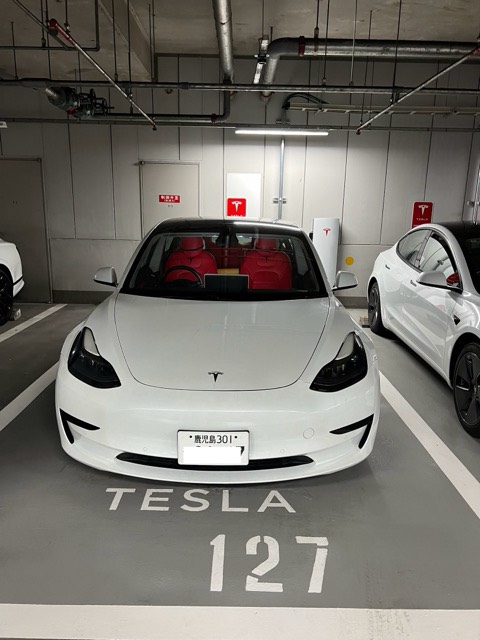 スーパーチャージャーを目的地に設定せず、ホテルオークラ福岡を目指して行った方が良いです。車寄せを通り過ぎたらその先に駐車場入り口があります(地下)。 地下三階に充電器は3台あり、よく埋まってます。同階の左端にある、管理人室でテスラオーナーの証拠を見せると駐車場サービス券を60分分もらえます。