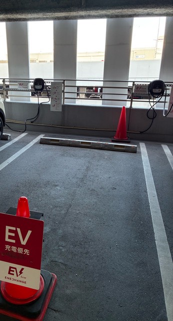 EV優先スペースがあります。 ケーブルも結構伸びます。