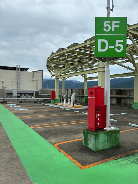 3kW出力で3台まで充電可能です! 5階駐車場にあります。屋根はありません。
