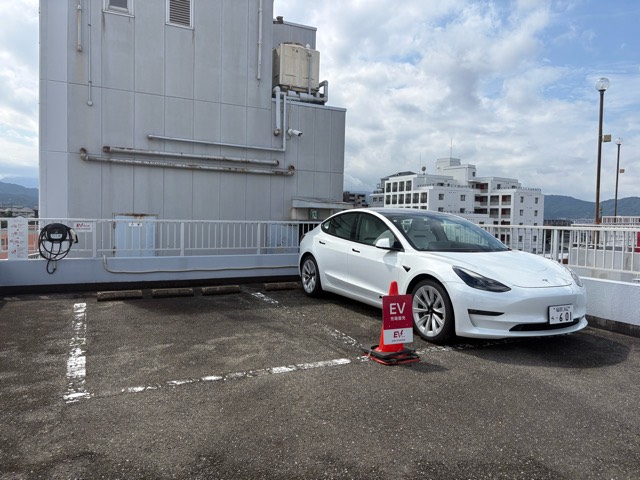 祝祭日10:00~22:45設置場所:屋上駐車場に出て、右側の駐車スペースにEV充電器があります。 どなたでもご利用いただけます。 最大出力6kW