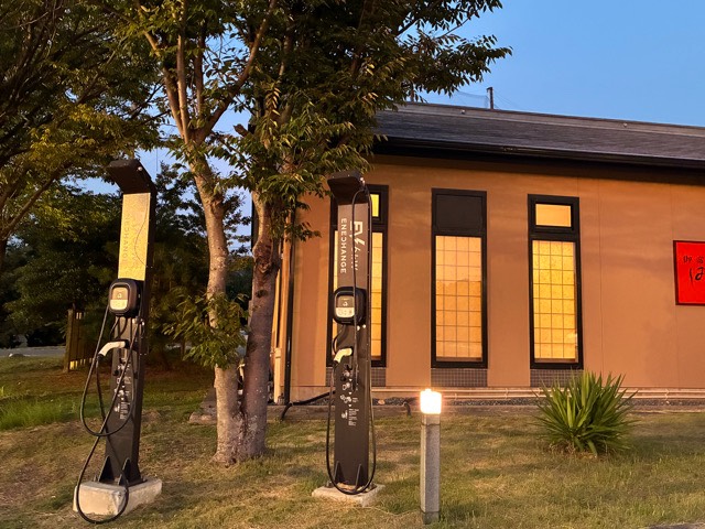 宿泊者以外は旅館フロントに声掛け必要、 なのを失念してて、一年半前の投稿の時は声掛けせず充電器しました。すみません… 充電器は変わらず敷地入ってすぐ旅館前にあります。