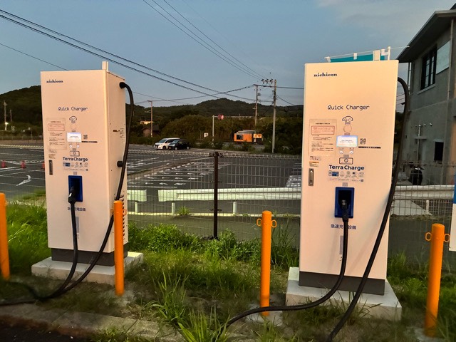 テラチャージの急速初めて見たかもしれないです。 前の充電器と同じ場所だったと思いますが、道の駅建屋に向かって右側の駐車場エリアにあります。