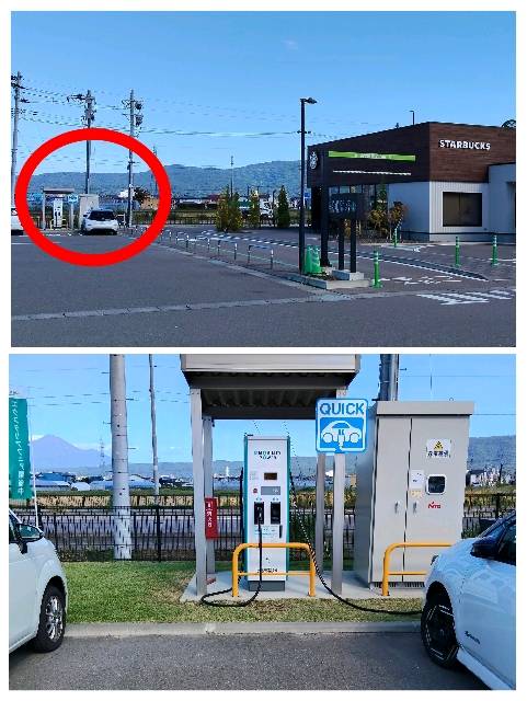 充電設備2基あり カインズとスタバで買い物休憩可能