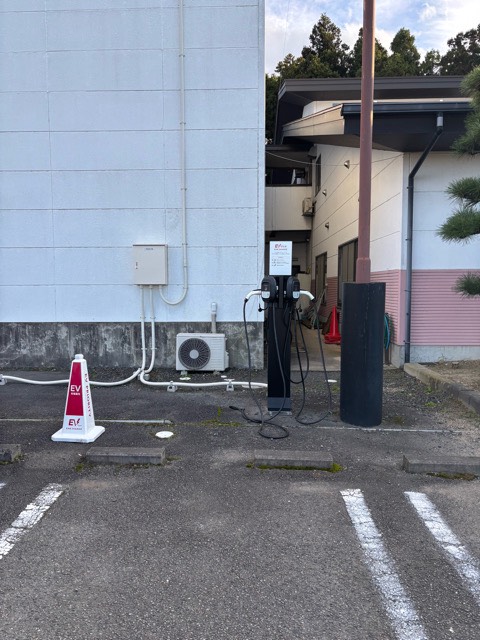 ご利用は宿泊者優先とさせていただきます。宿泊のお客様はホテルの公式サイトで詳細をご確認ください。 設置場所:国道49号線より敷地内へ入り、エントランス右側の車室にEV充電器があります。 充電器には鍵がかけられていますので、ご利用を希望される際にはフロントまでお申し付けください。 最大出力6kW